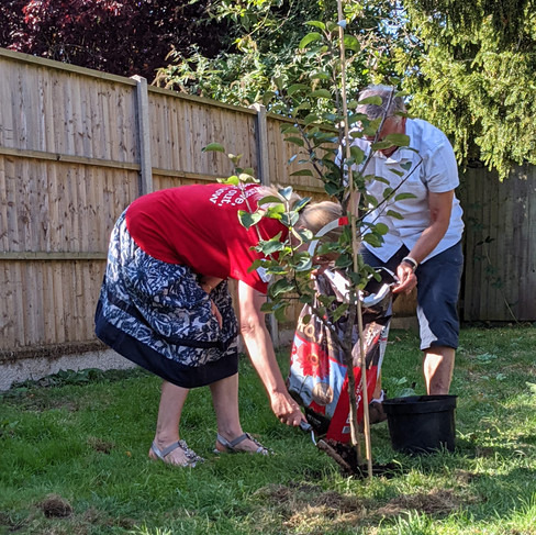 Towards the end of the afternoon, we planted an apple tree in our back garden, with everyone present being invited to help fill in the hole and come back to see the tree's progress.